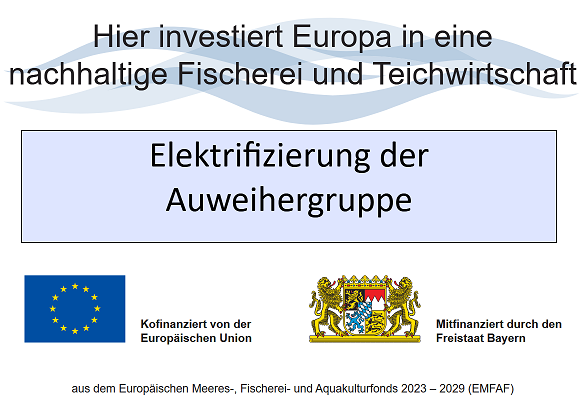 Früher mussten die Belüftungsgeräte mit Benzingeneratoren angetrieben, da es kein Stromanschluss in der Nähe der Teiche gab. Inzwischen konnten wir diverse Weiher elektrifizieren, d.h. Kabel verlegen und Verteilerkästen an den Dämmen unserer Teiche aufstellen, und so die Belüftung verbessern. Hierbei wurden wir dankenswerterweise durch den Freistaat Bayern und die Europäische Union unterstützt.