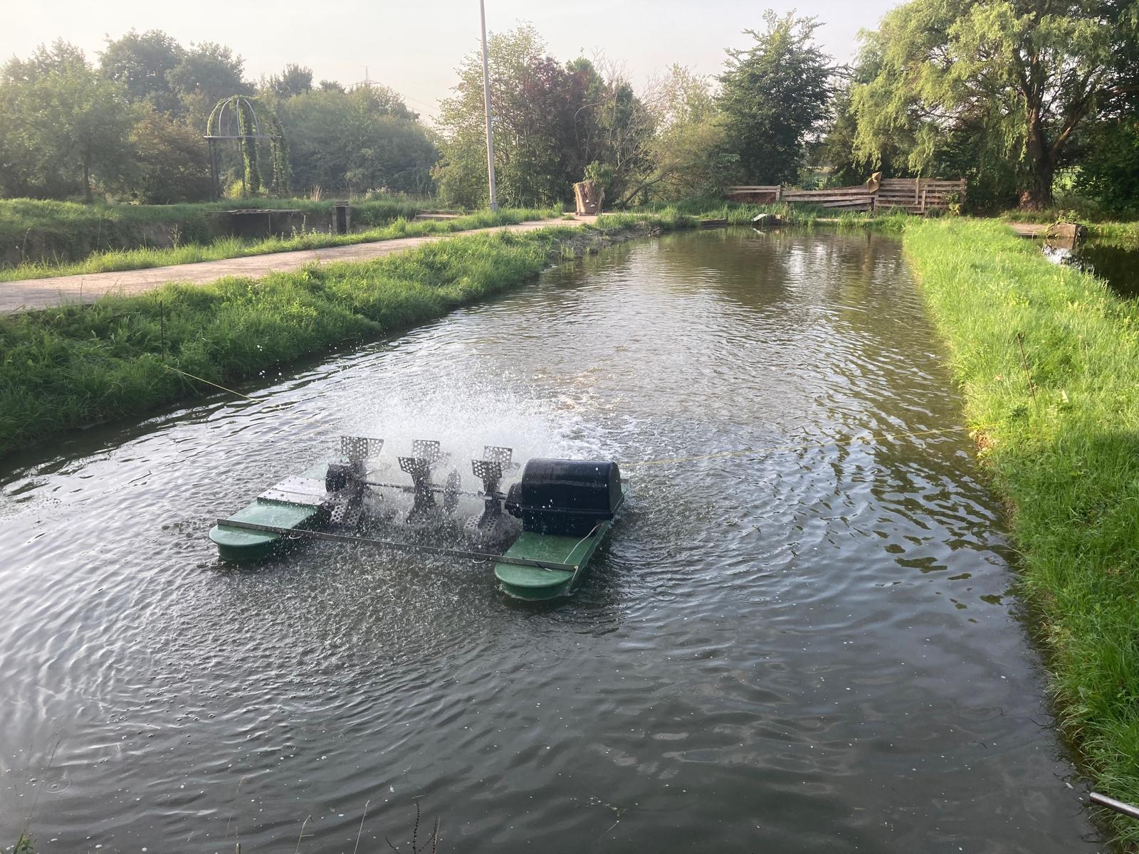 Um dem gegenzuwirken müssen wir im Sommer Teiche zeitweise belüften. Dies beugt einer Sauerstoffmangelsituationen vor.
